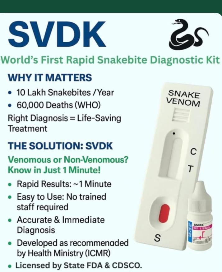 India has achieved an unprecedented milestone in the field of snakebite management and public health by successfully developing the world’s first Rapid Snake Venom Detection Kit (SVDK). This landmark innovation represents a historic breakthrough not only for India but also for global healthcare systems addressing snakebite envenomation.